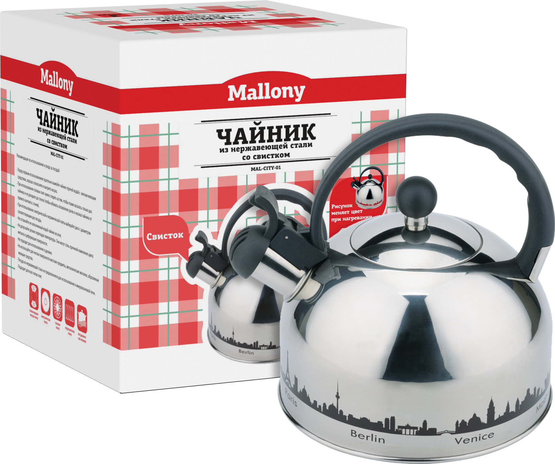 Чайник для плиты Mallony MAL-CITY-01 2,8л со свистком с рисунком меняющим цвет