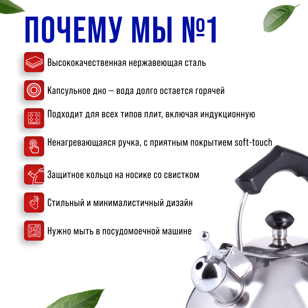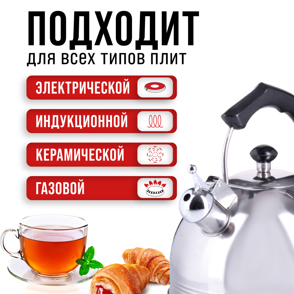 Купить Чайник 3 л нержавеющая сталь со свистком MAYER & BOCH