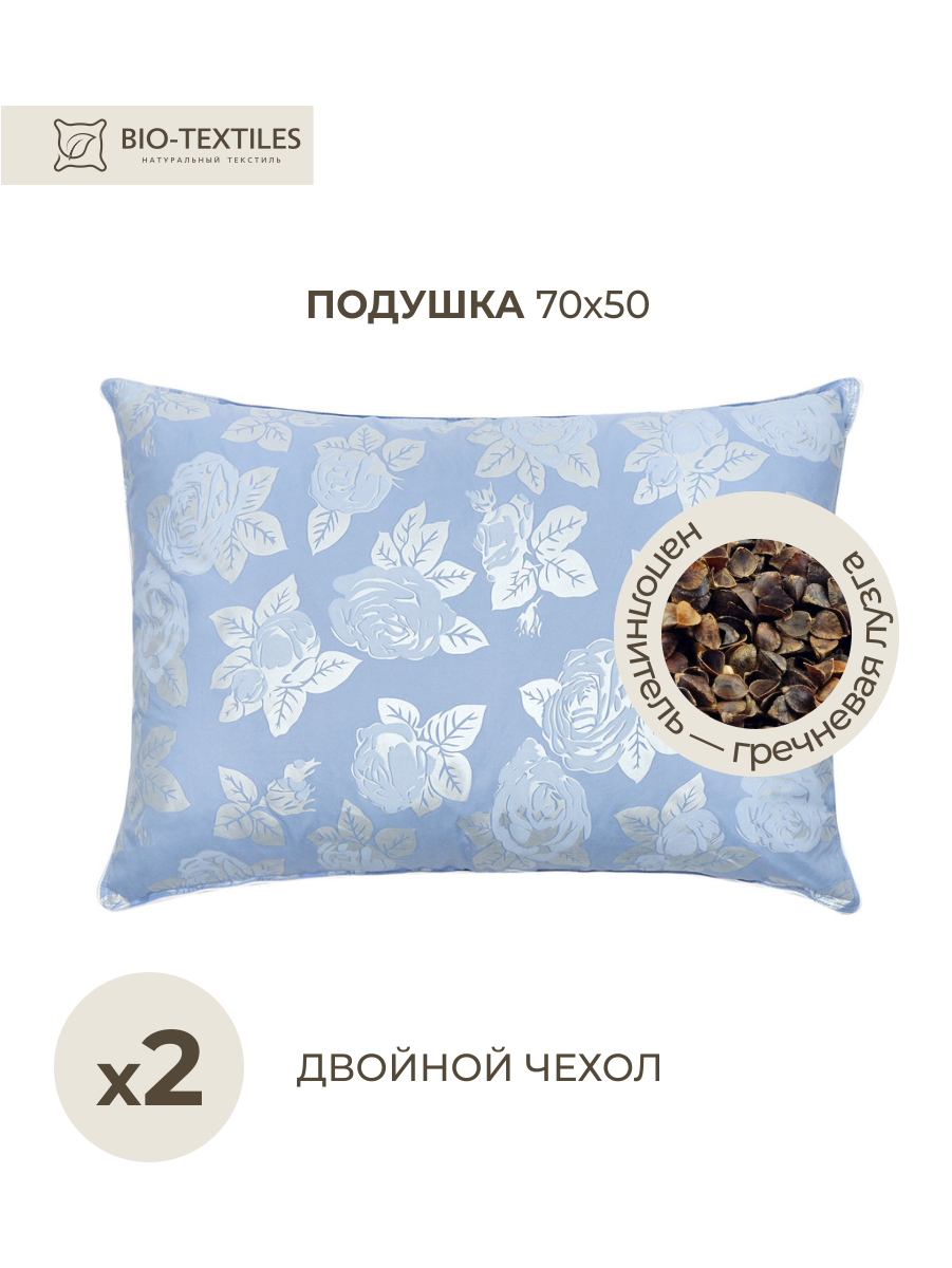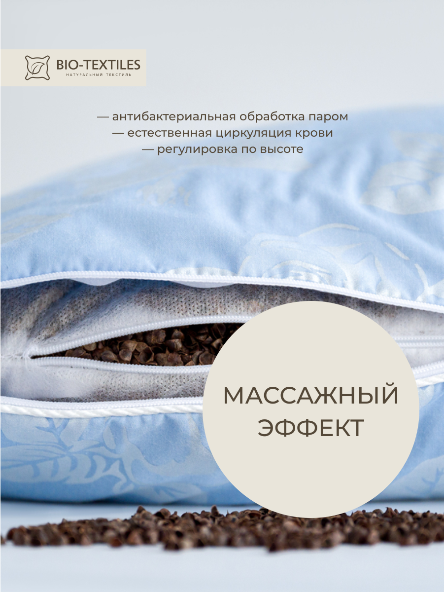 Подушка ортопедическая 50*70 с лузгой гречихи BIO-TEXTILES сила природы голубая ТИК интересное: