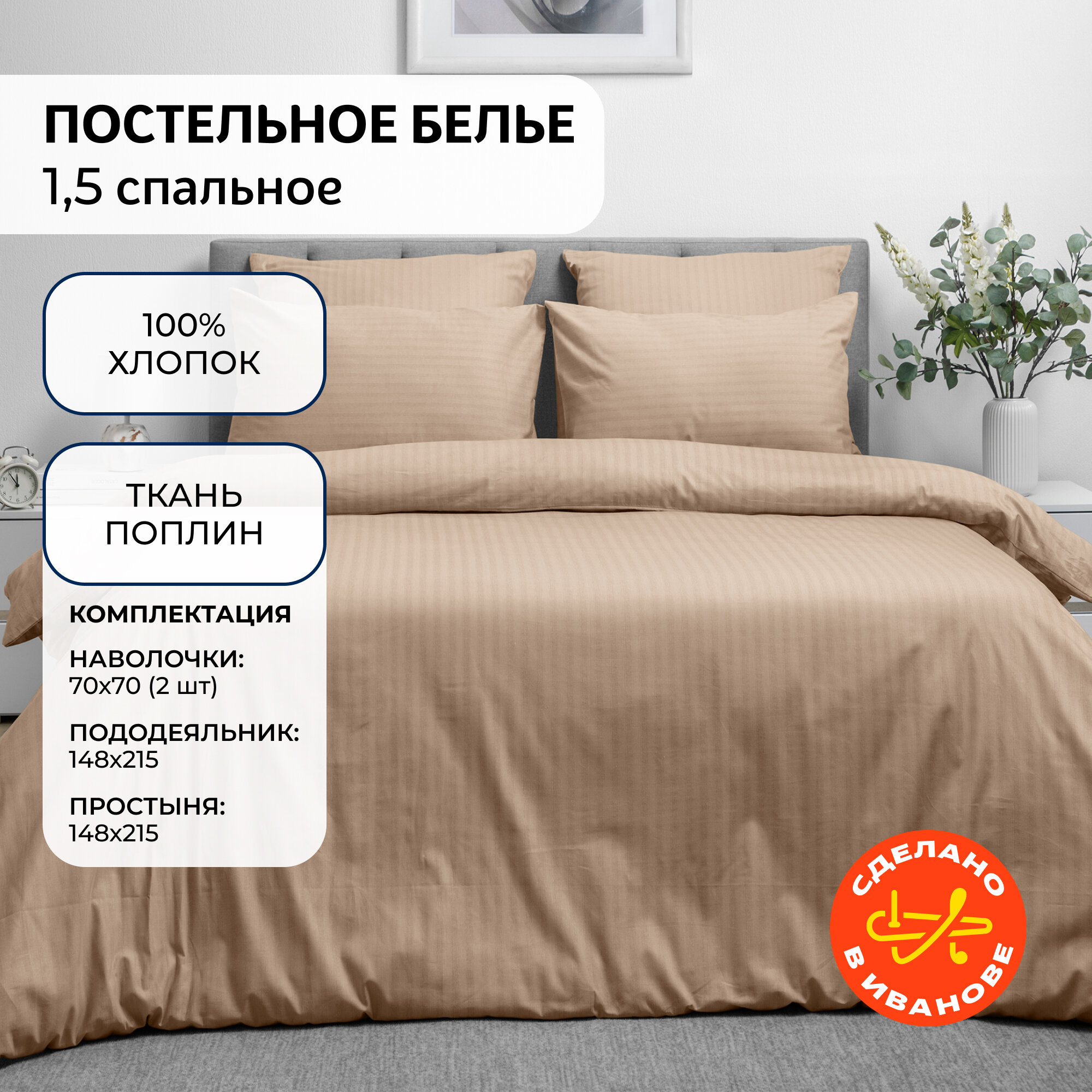 Постельное белье 1.5 спальное, наволочки 70х70, поплин, хлопок 100%