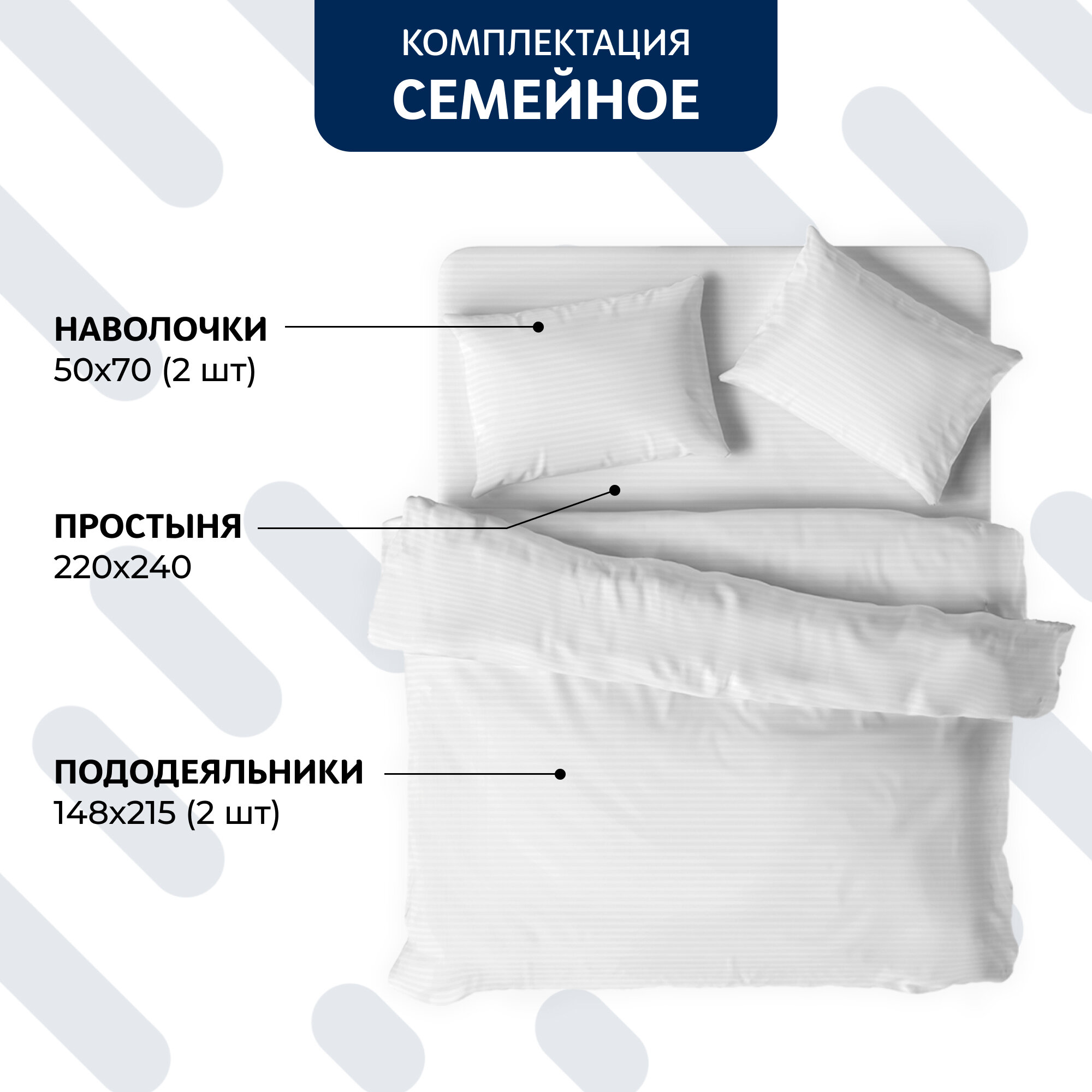 Постельное белье семейное, наволочки 50х70, поплин, хлопок 100%