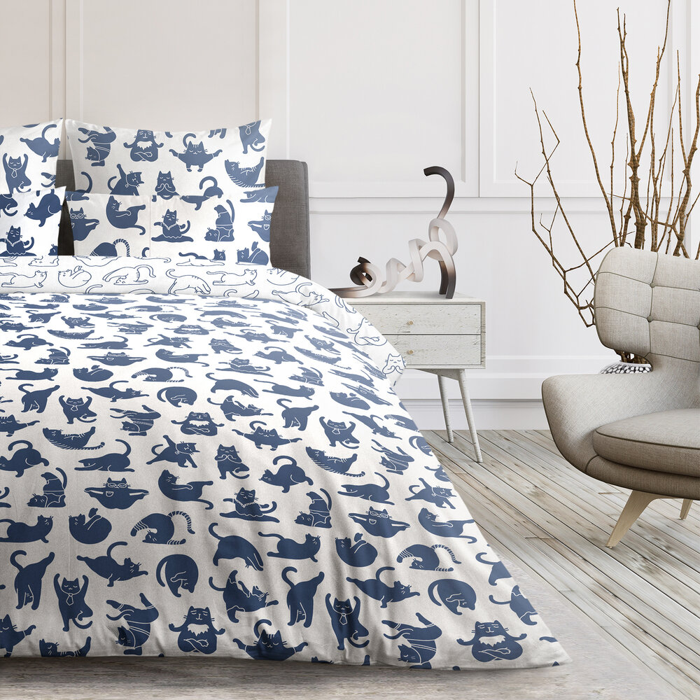 Купить Двуспальный комплект постельного белья Ранфорс Волшебная Ночь Yoga cat с наволочками 70х70, 790521 .