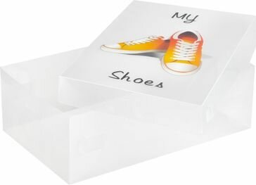 | Отзыв: | Очень удобные коробки. Подошли по размеру 43 размеру обуви, и есть ещё запас по месту. Нравится что не нужно открывать, чтобы понять что за пара обуви внутри. Собирается легко. Качество пластика хорошее. |