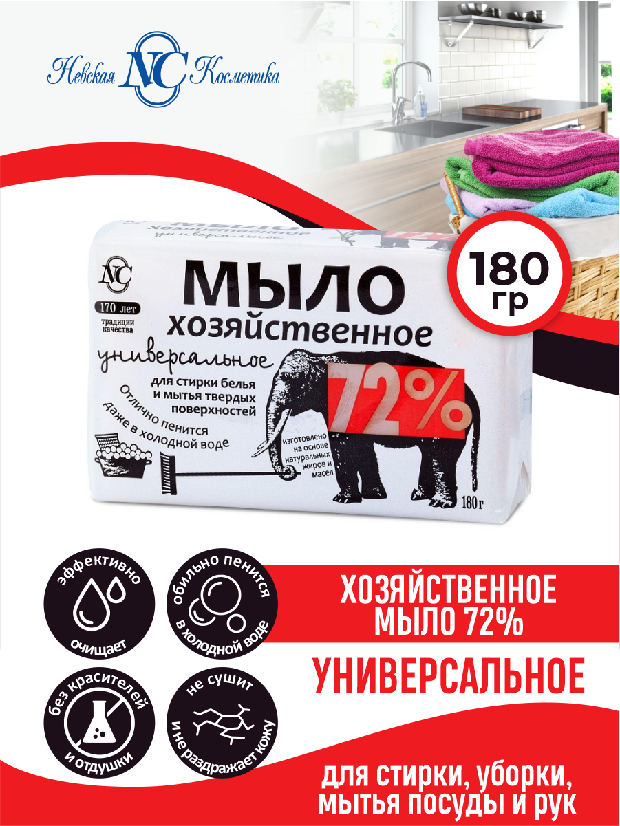Мыло Невская косметика, хозяйственное, универсальное 72 %, 180 г