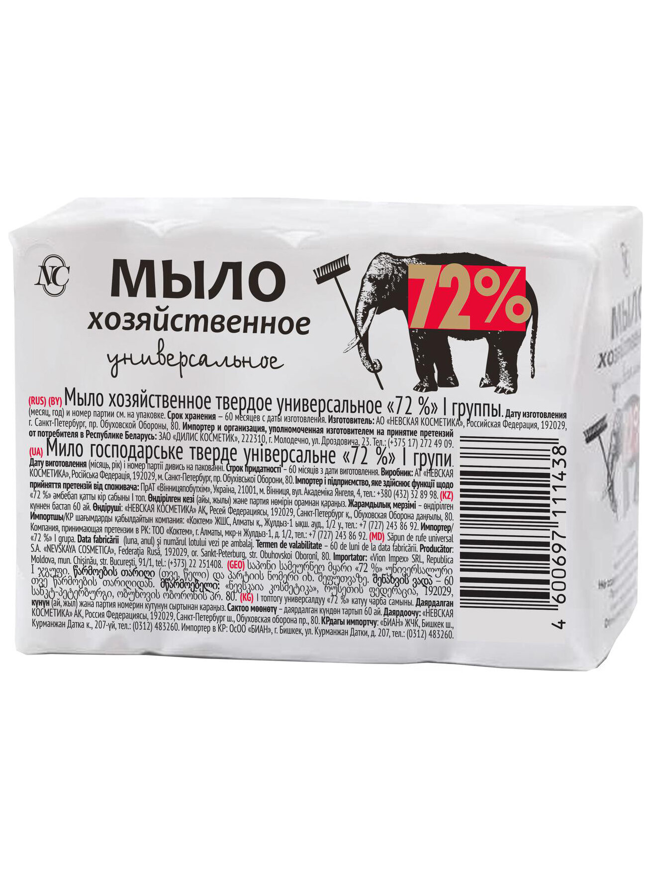 Хозяйственное мыло NC 72% универсальное, 180 г