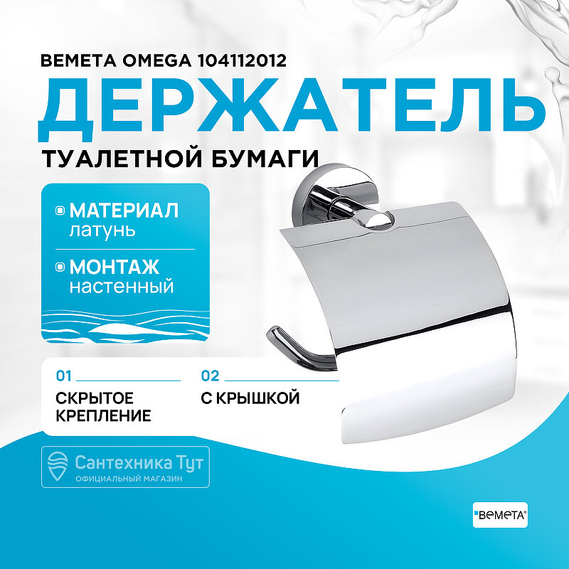 СохранитьДержатель туалетной бумаги Bemeta Omega 104112012 настенный, с крышкой, цвет: хром интересное: