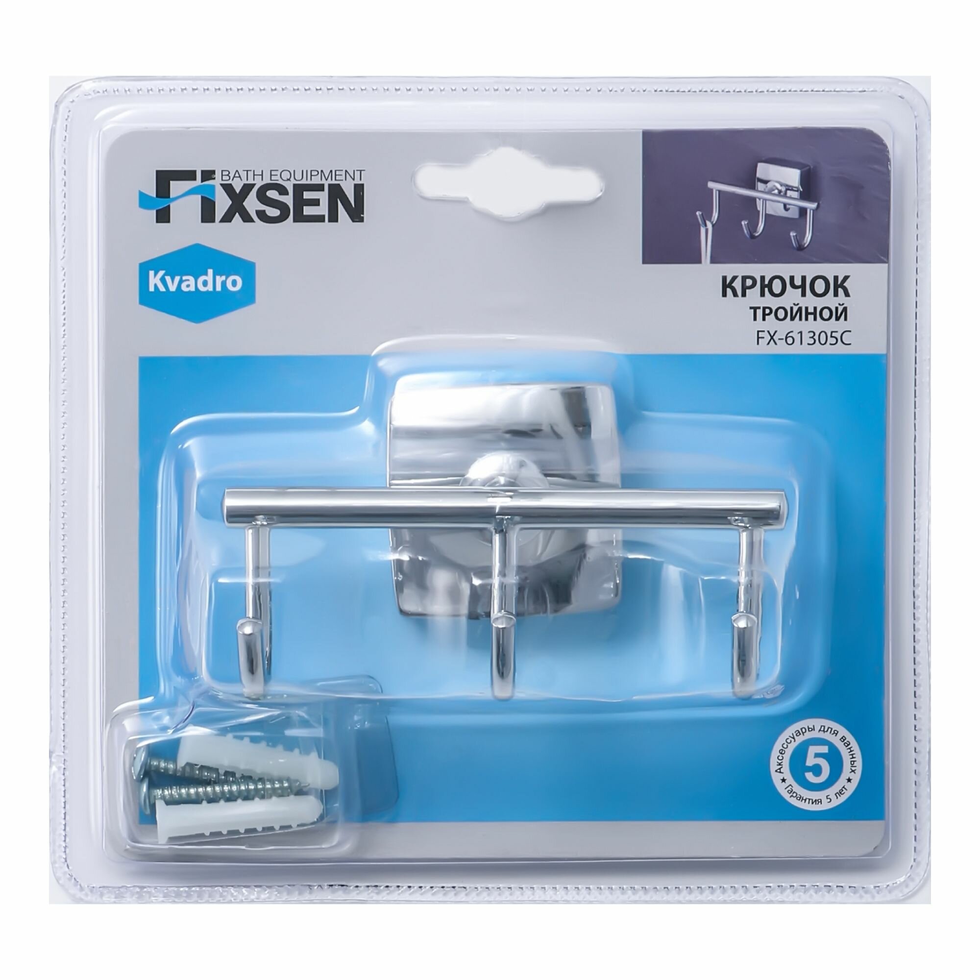 Крючок тройной FIXSEN KVADRO FX-61305C (блистер)