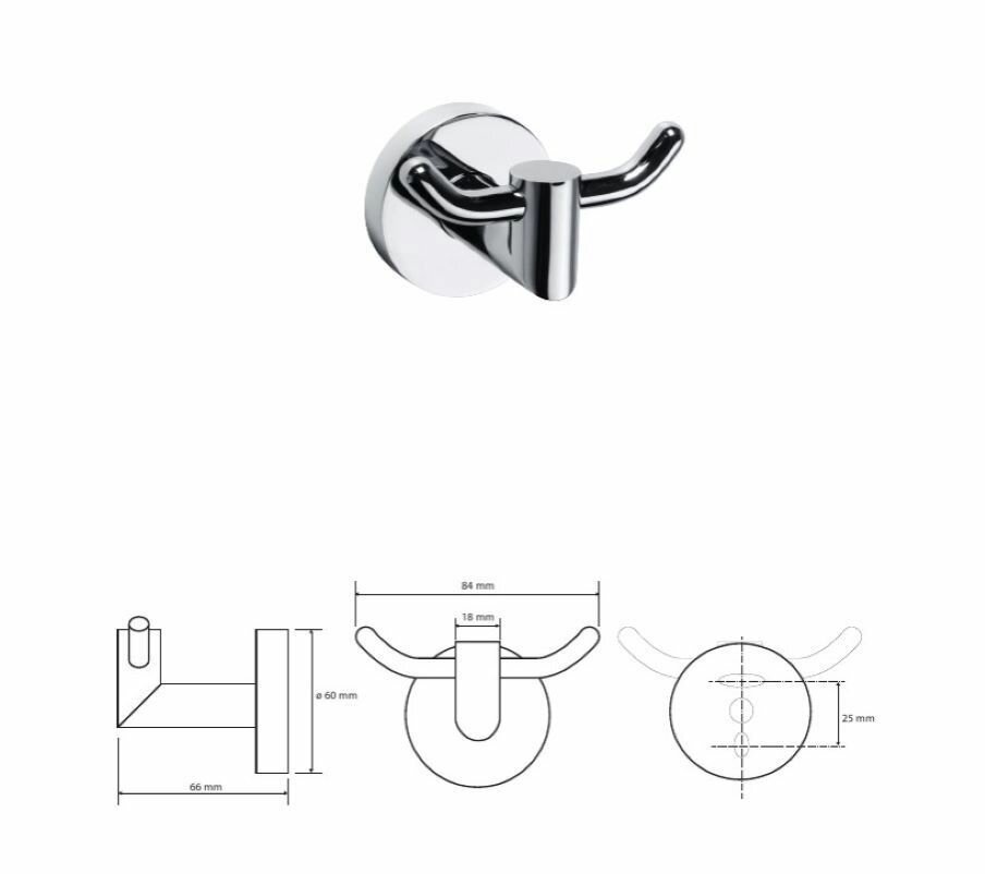 Крючек двойной Bemeta Omega 104206032, хром глянцевый