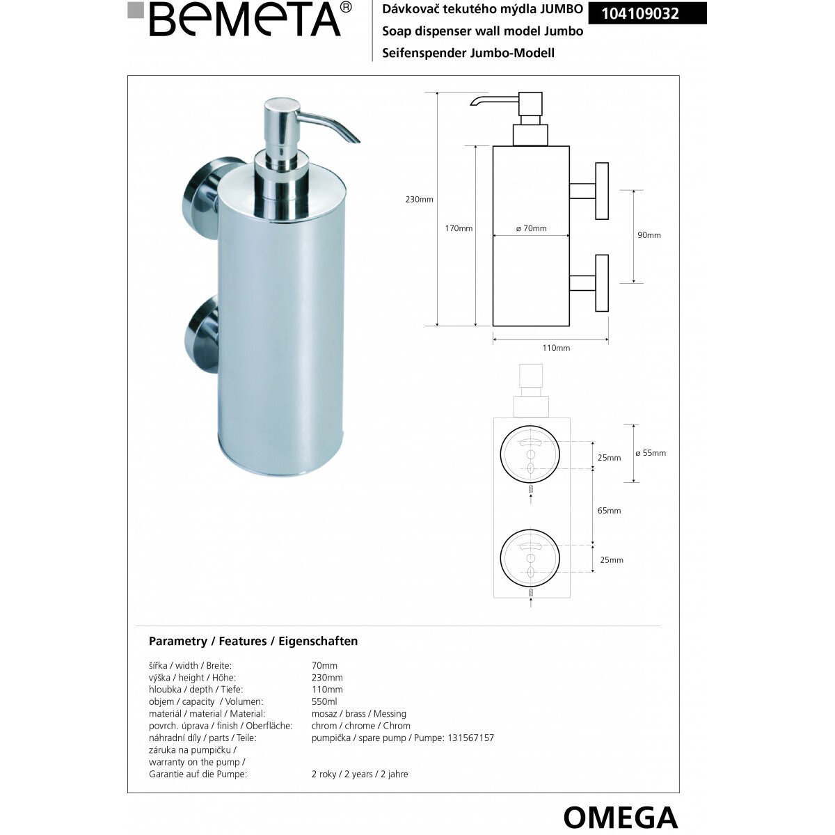 Дозатор Bemeta Omega 104109032