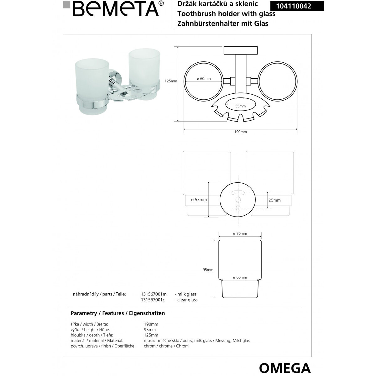 Стакан для зубных щеток двойной с держателем Bemeta OMEGA 104110042