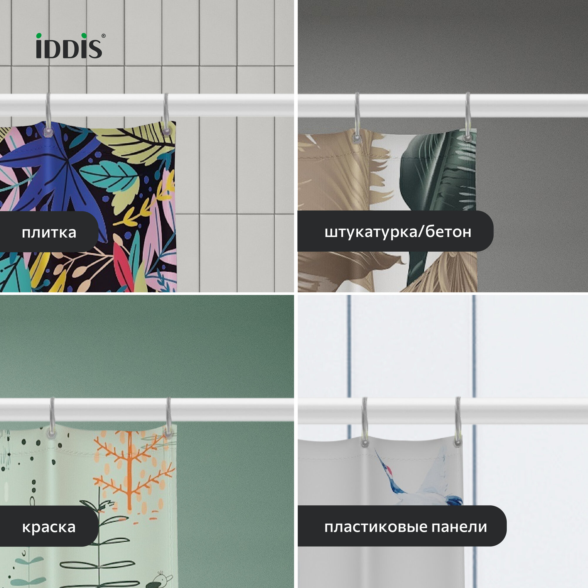 Штора для ванной комнаты и душа IDDIS Base BP01P18i11 180x200 см, тканевая, водонепроницаемая, полиэстер, с кольцами