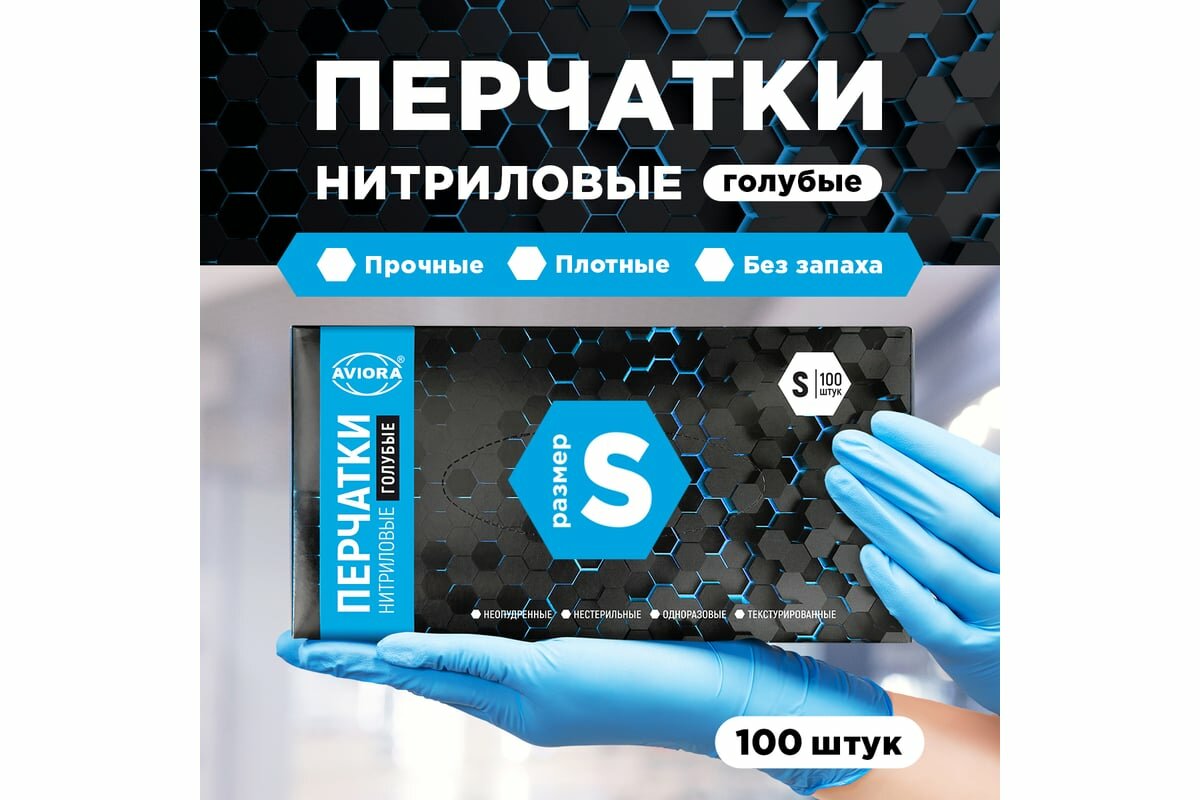 Aviora Перчатки нитриловые, неопудренные, одноразовые, голубые, размер S, 50 пар