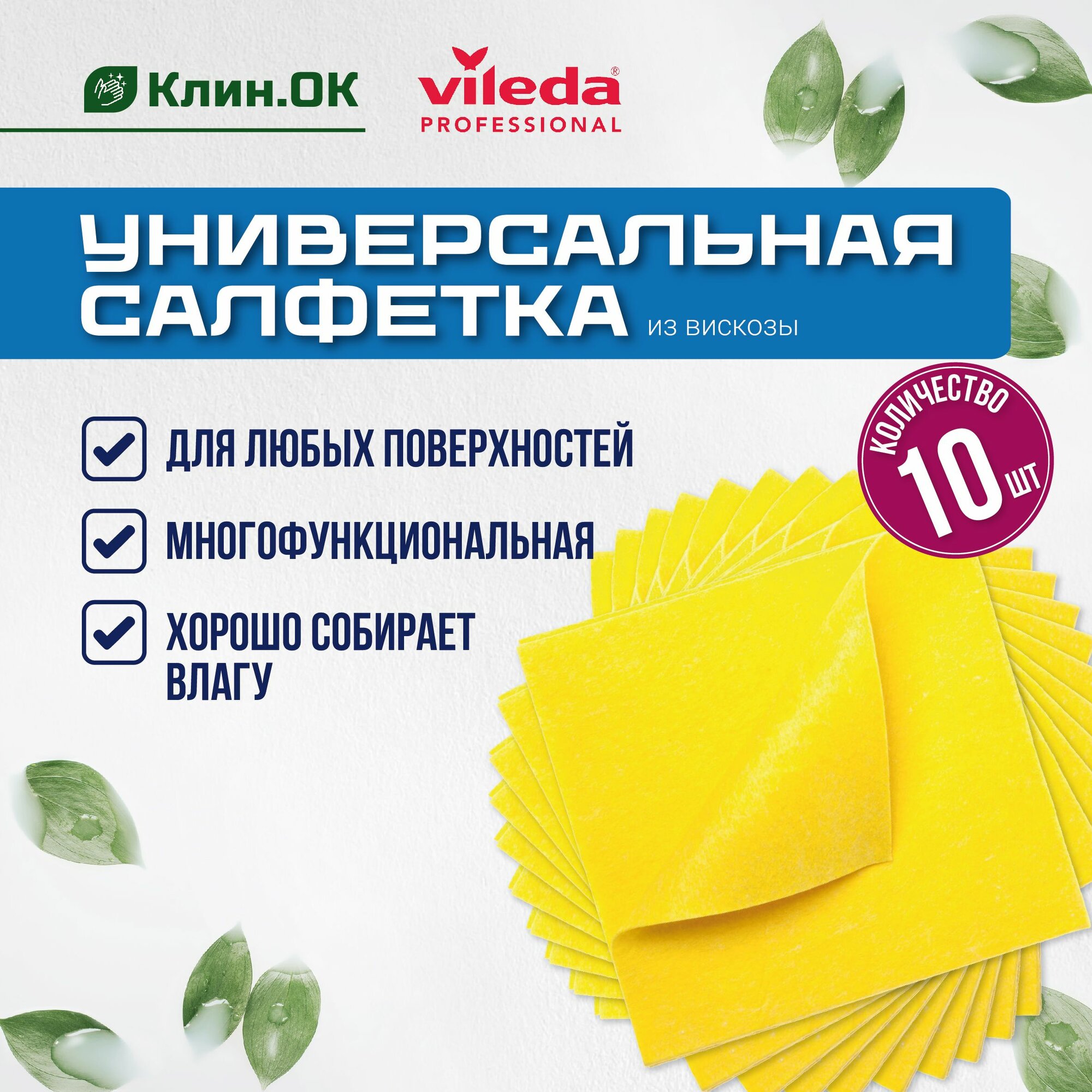 Салфетка Универсальная Vileda Professional для уборки из вискозы, тряпка для пыли, для ванны и кухни, тряпочка многоразовая 40х38 см, зеленый, 10 шт/уп