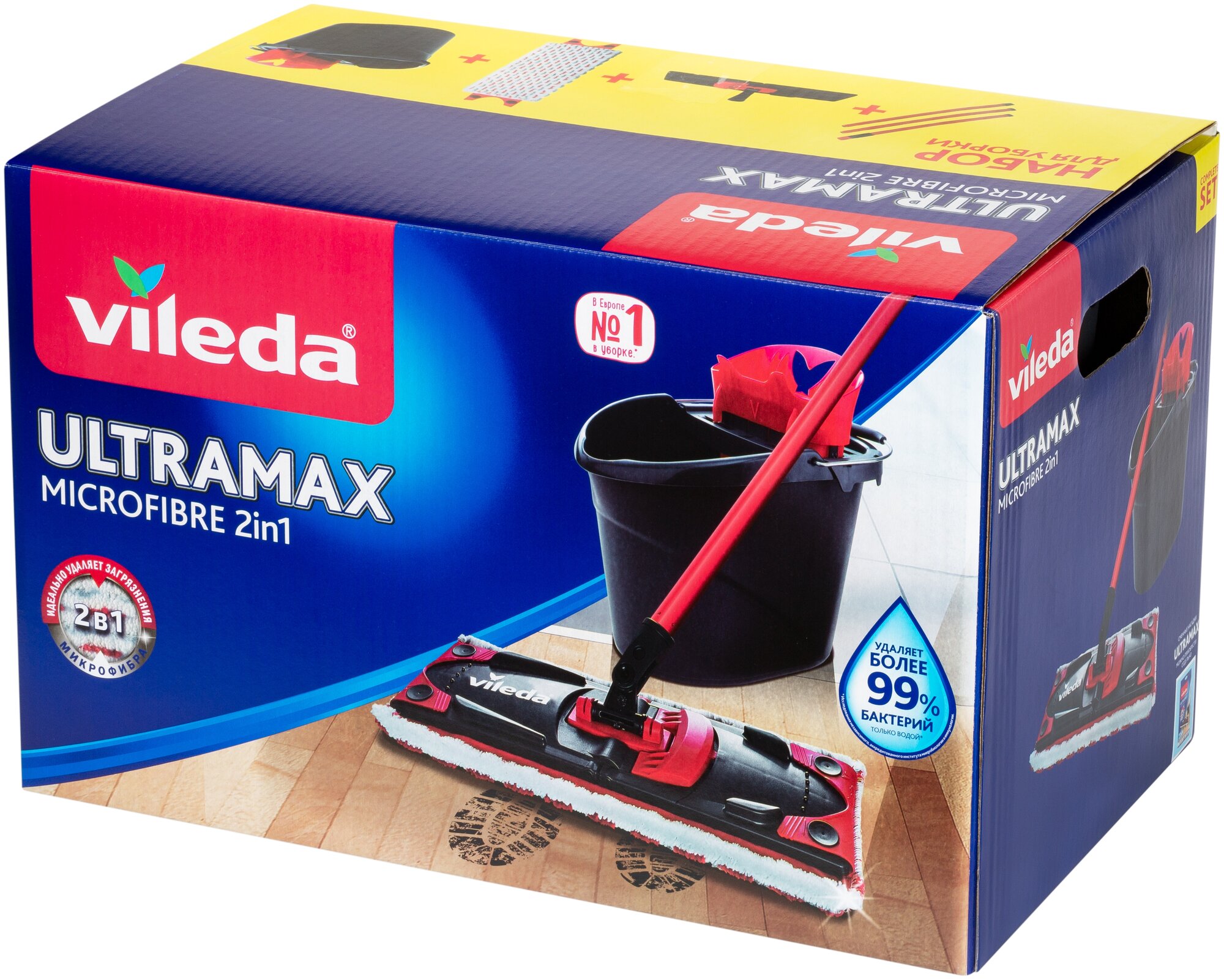 Купить Набор для уборки пола Vileda Ultramax, ведро 12 л. с отжимом, ручка, держатель насадки, моющая насадка, 8137431