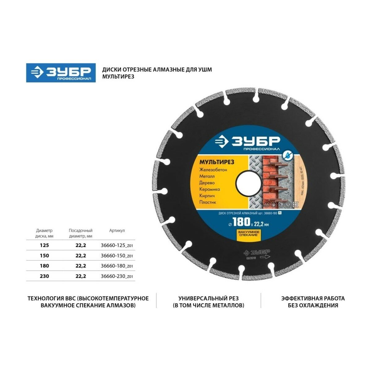 ЗУБР мультирез 150 мм (22.2 мм, 5х2.6 мм), алмазный диск, профессионал (36660-150)
