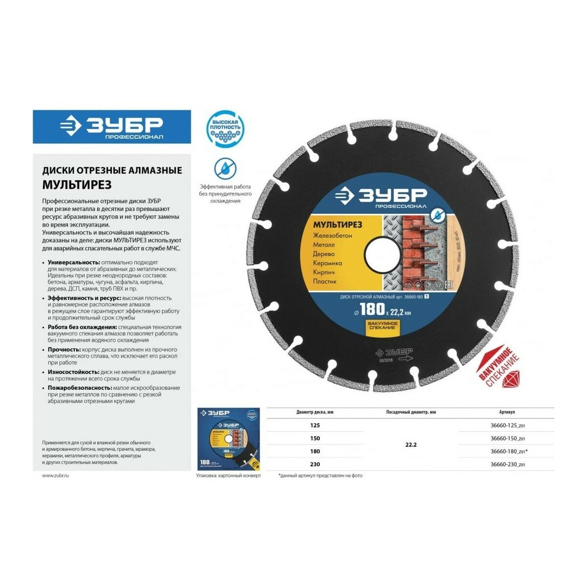 ЗУБР мультирез 150 мм, диск алмазный отрезной универсальный (150х22.2 мм, 5х2.6 мм), , серия Профессионал (36660-150_z01)