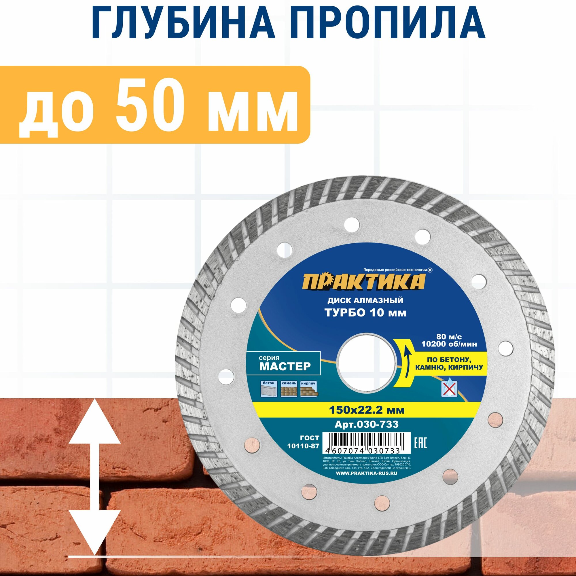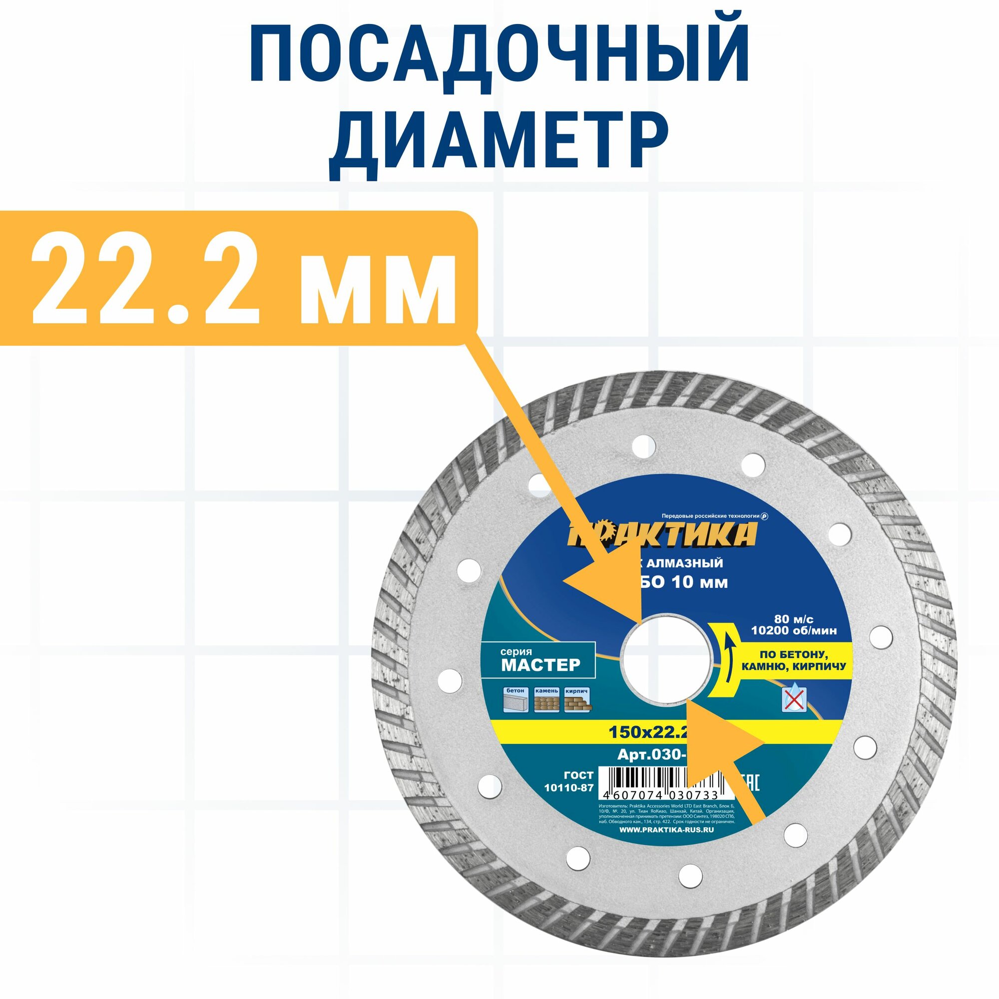Купить Диск алмазный турбированный ПРАКТИКА "Мастер" 150 х 22 мм