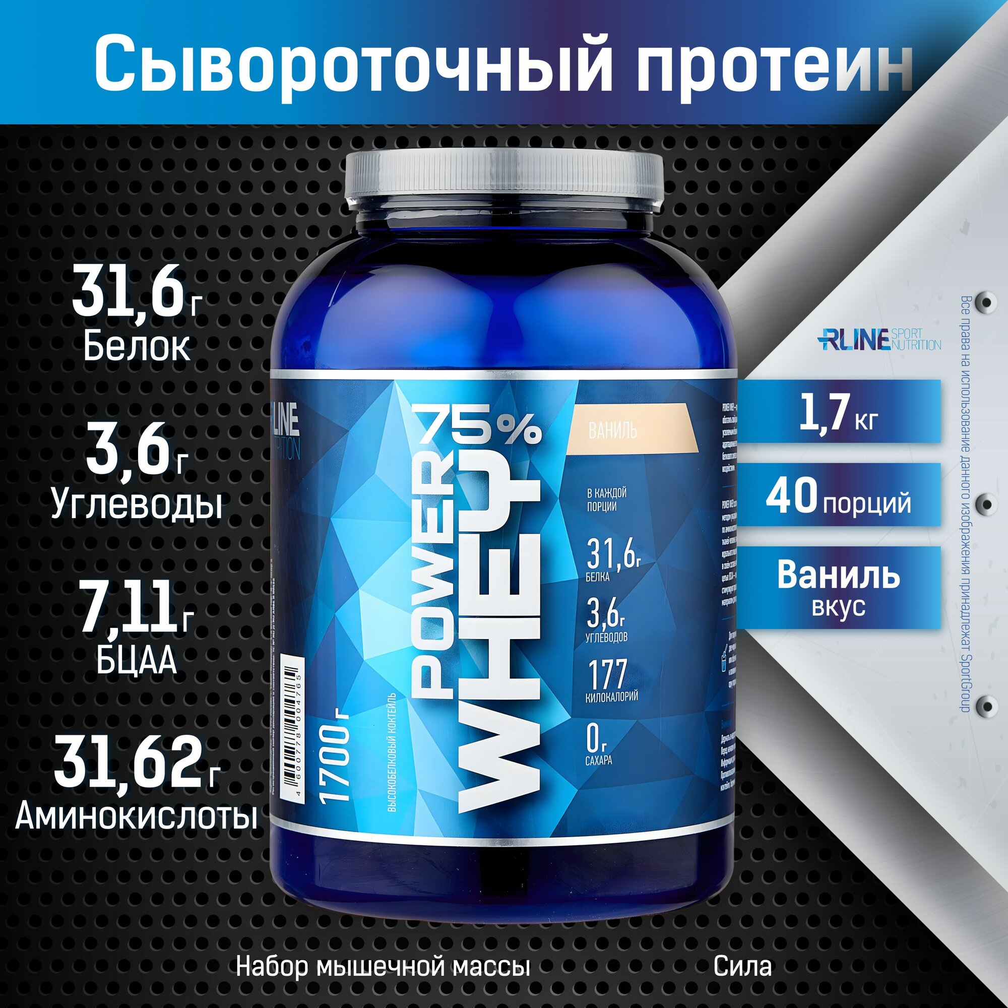 Протеин RLINE Power Whey (1.7 кг, банка) ваниль