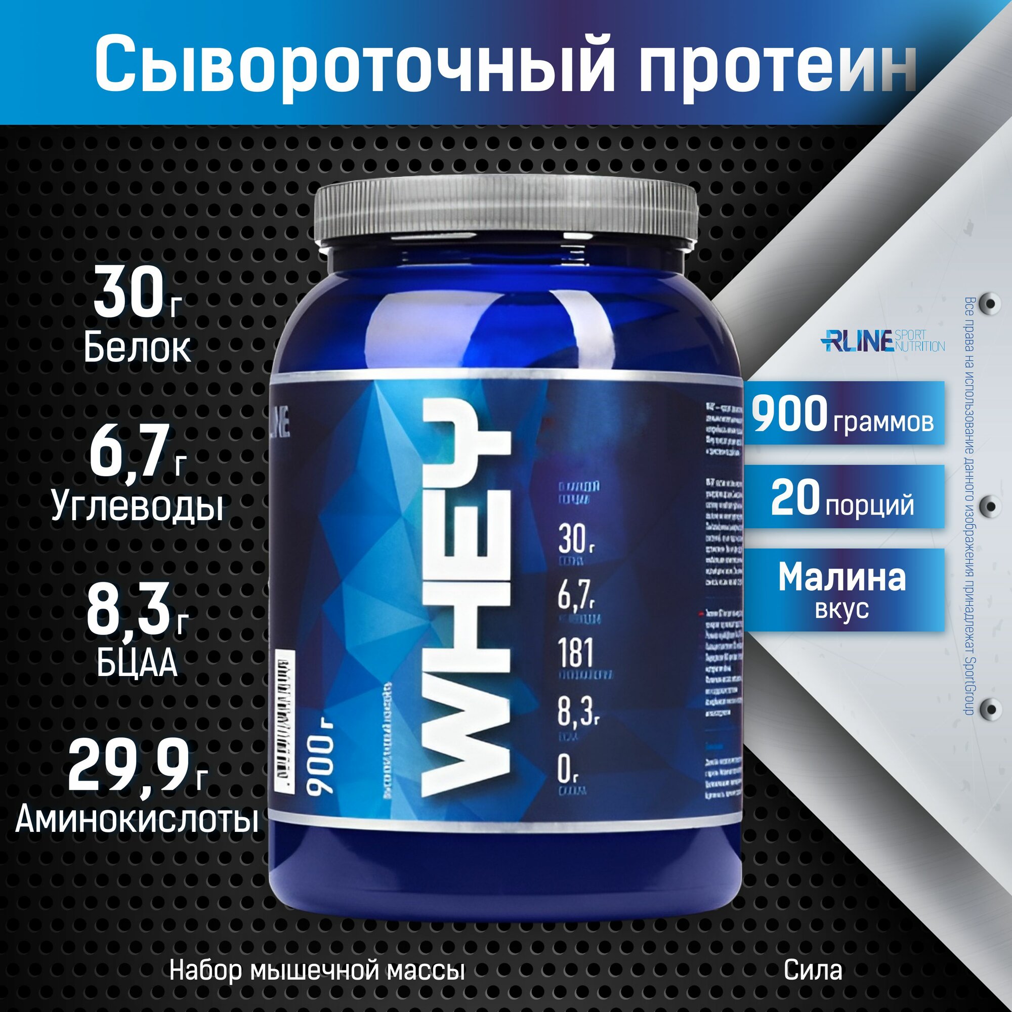 Протеин RLINE Power Whey (0.9 кг, банка) малина