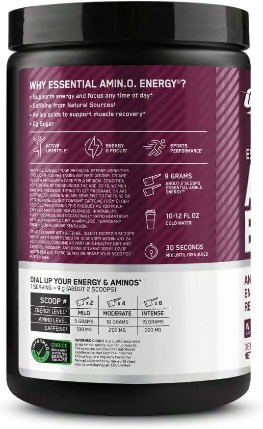 Аминокислоты OPTIMUM NUTRITION Essential Amino Energy 270 г, Красный Виноград