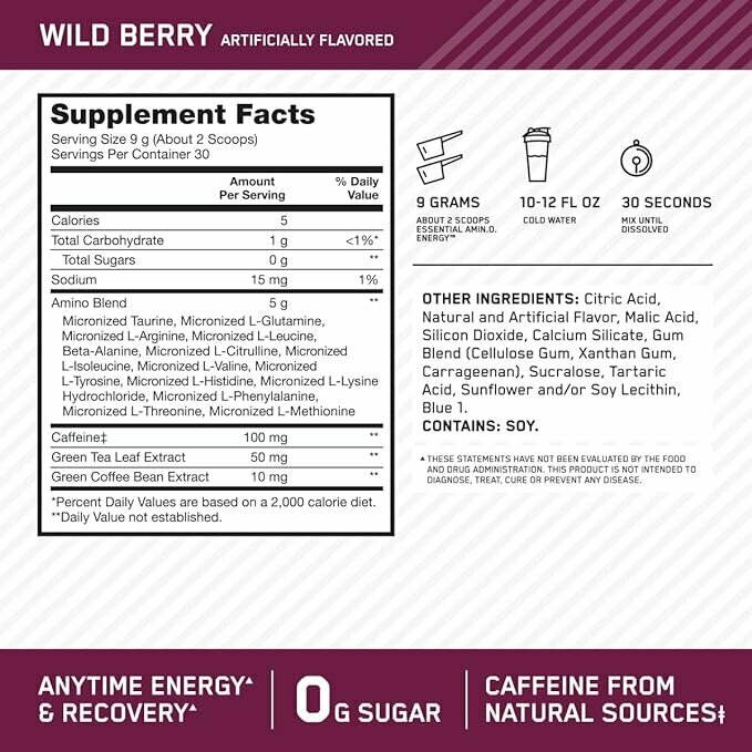 Аминокислоты OPTIMUM NUTRITION Essential Amino Energy 585 г, Ежевика