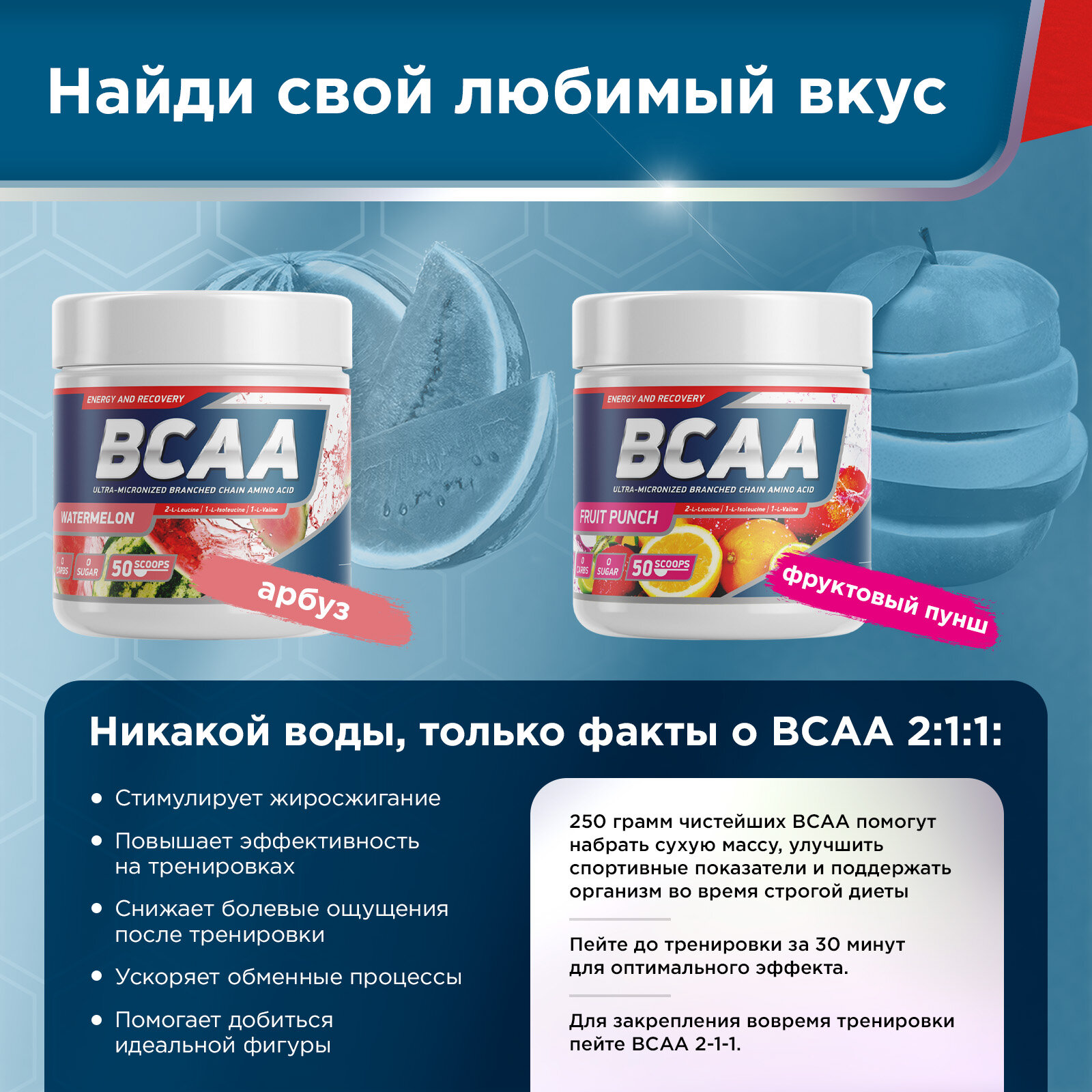 BCAA 2 1 1 250 gr, 50 порции(й), арбуз