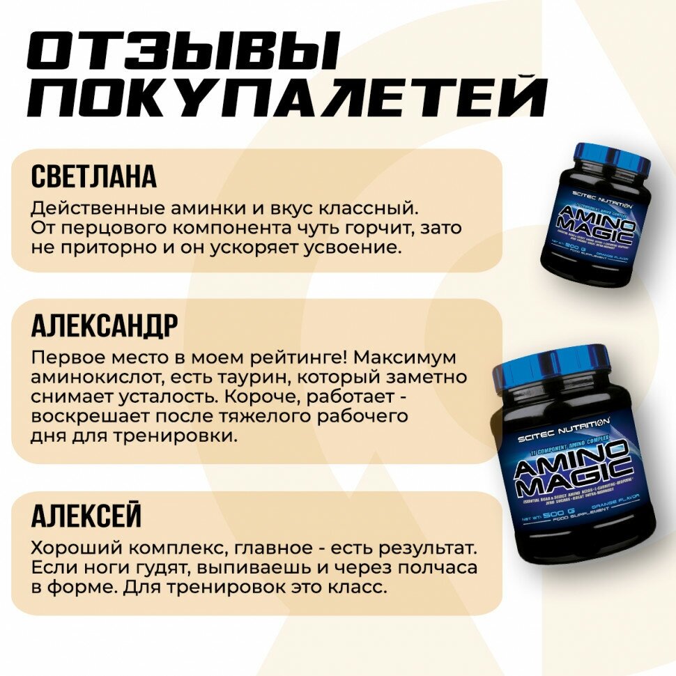 Ниже Вы можете прочитать отзывы на Amino Magic 500 гр (Scitec Nutrition) Апельсин, ознакомится с подробными характеристиками, посмотреть интересные обзоры и фотографии на Amino Magic 500 гр (Scitec Nutrition) Апельсин.