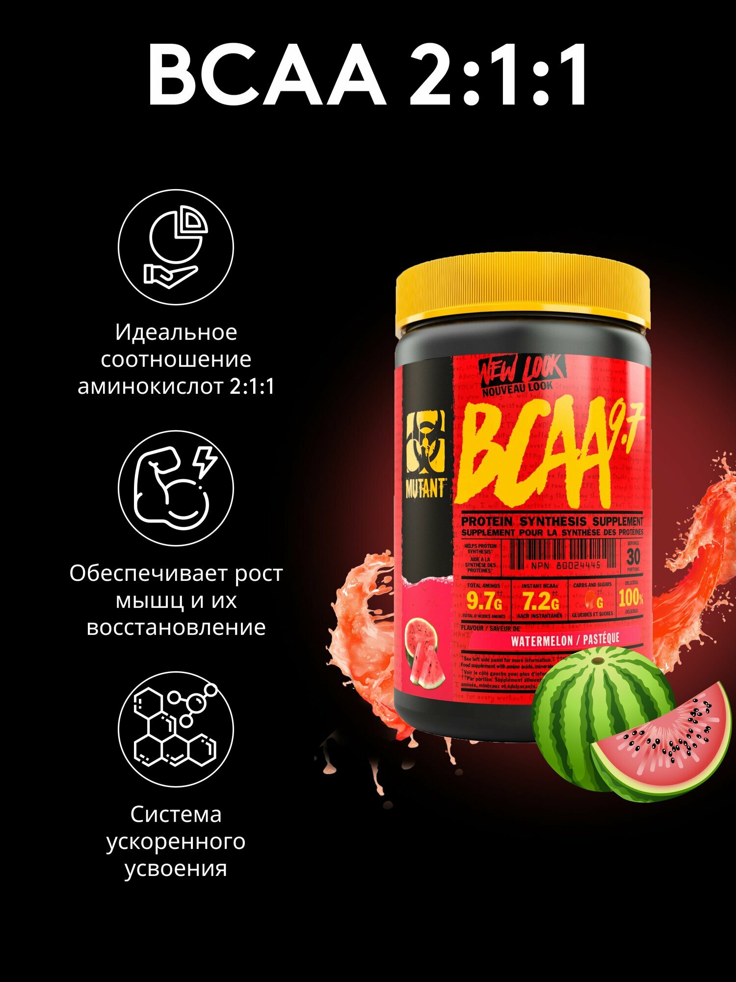 СохранитьНезаменимые аминокислоты Mutant ВСАА 9.7 с электролитами, порошок 30 порций, 348 гр, Арбуз интересное: