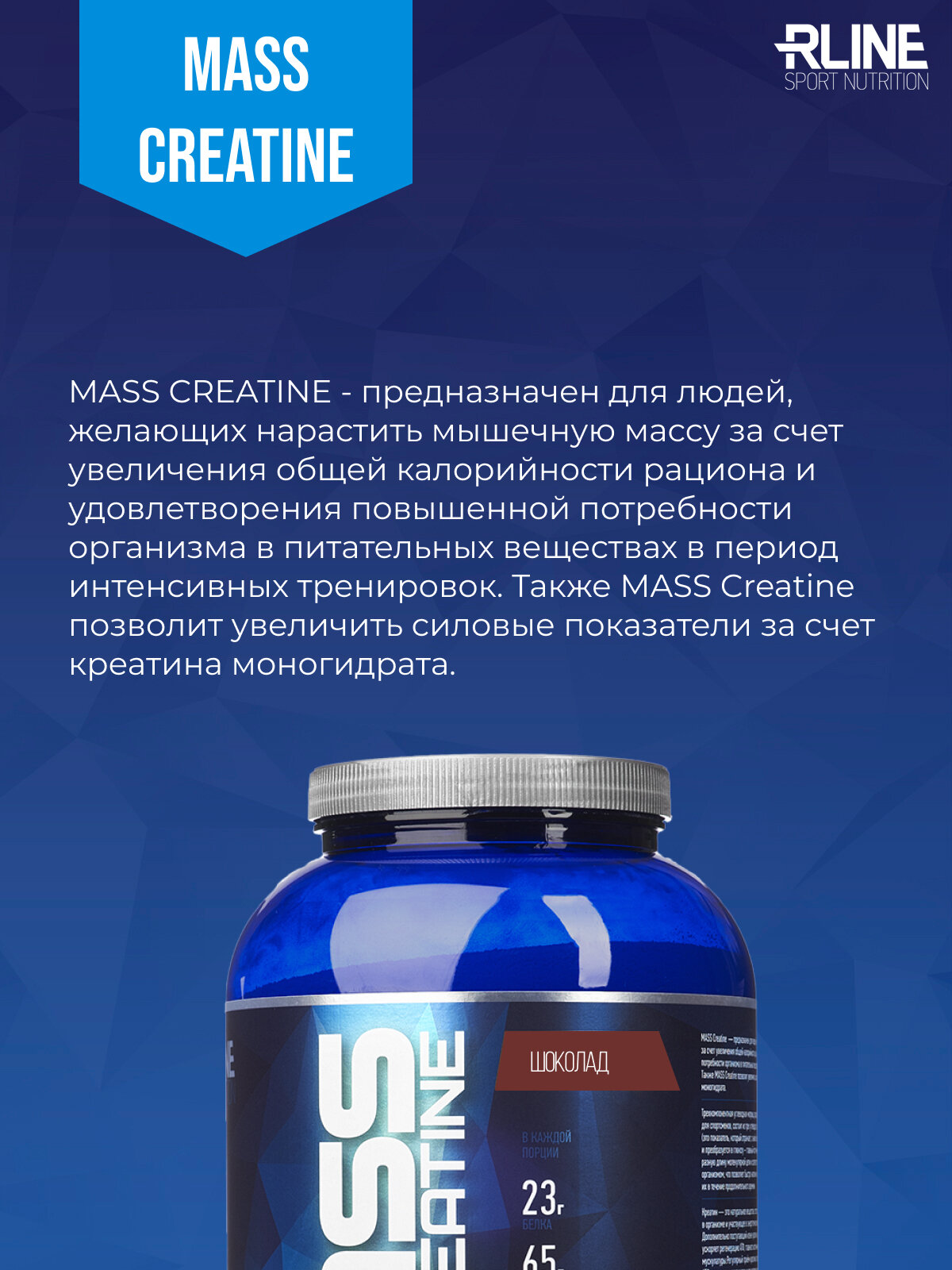 Купить RLINE Mass + Creatine 2 кг Большая банка (Шоколад)