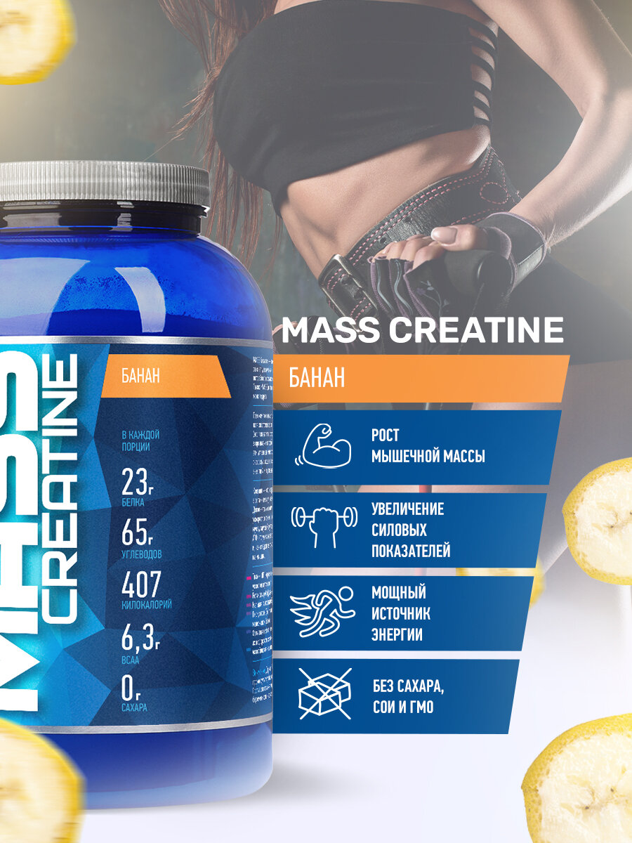 Купить RLINE Mass + Creatine 2 кг Большая банка (Банан)