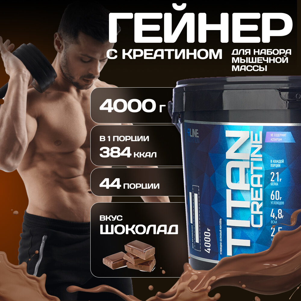Гейнер Titan Creatine 4000 г/ набор массы веса/ Gainer MASS/ высокоуглеводный/ высококалорийный/ белковый/ шоколад/