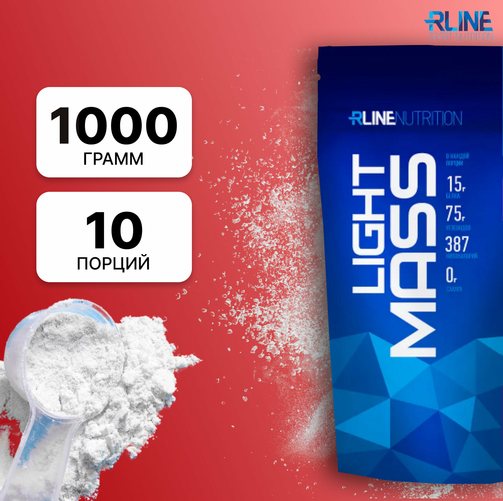 Купить Высокоуглеводный гейнер Rline LIGHT MASS 1000 г (клубника)