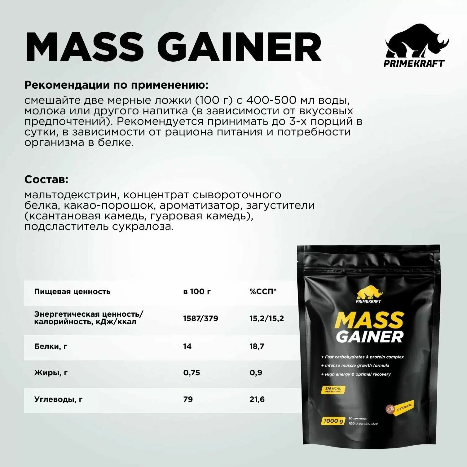 СохранитьГейнер Prime Kraft Mass Gainer 1000g шоколад интересное:
