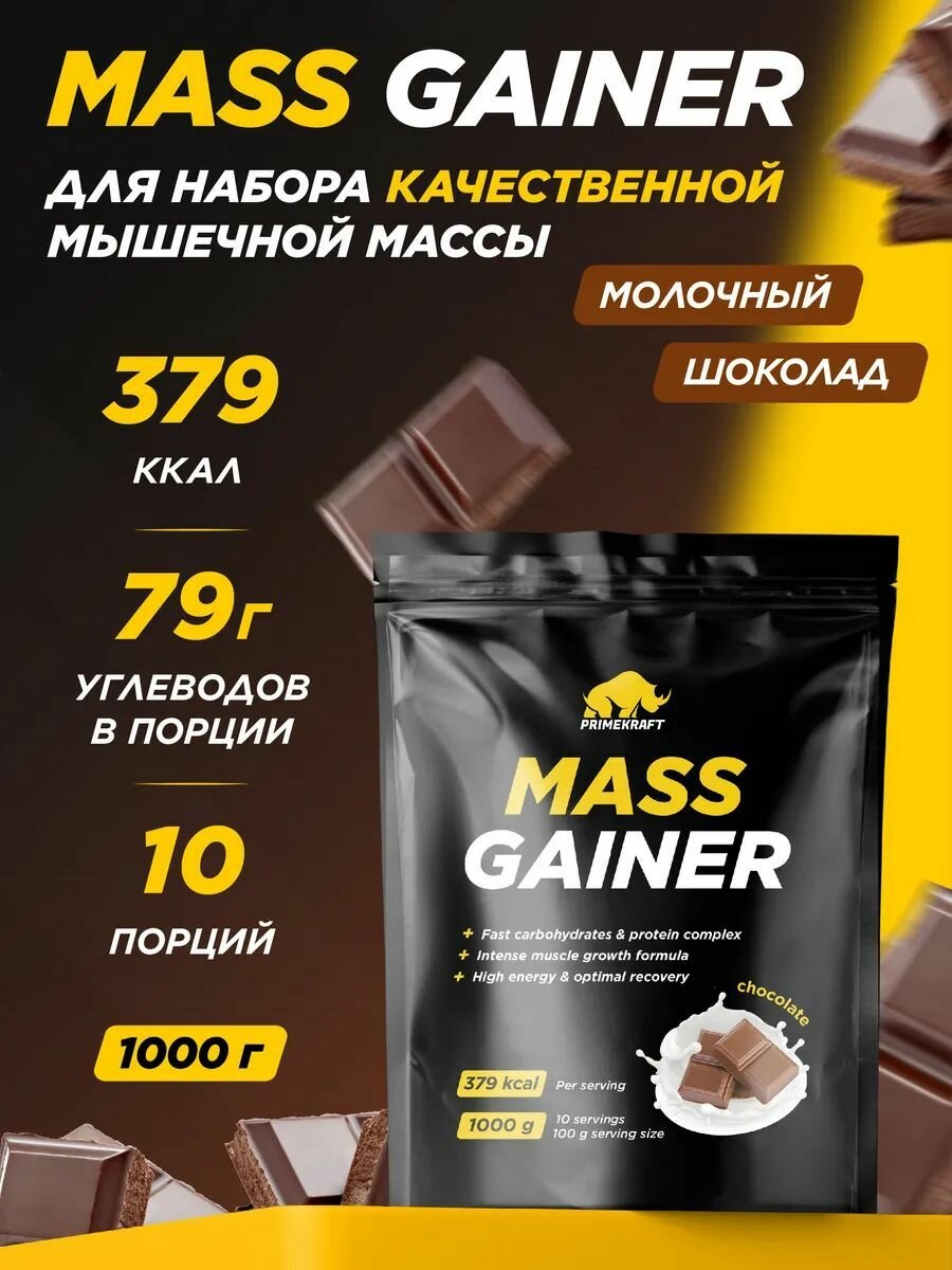 Гейнер белково-углеводный PRIMEKRAFT/ MASS GAINER для набора массы со вкусом "Шоколад" 3000 гр