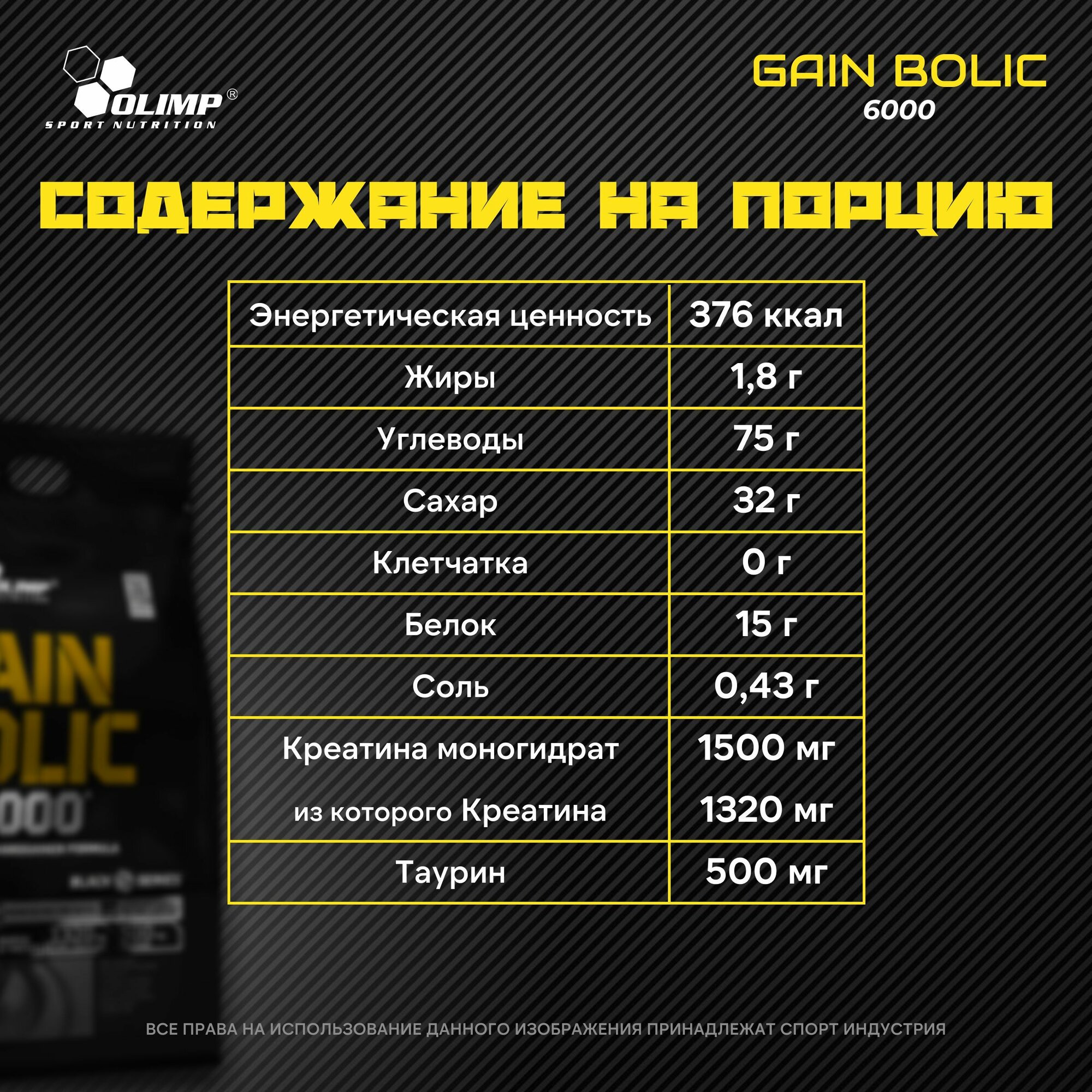 Гейнер Gain Bolic 6000, 1кг (ванильный) / Olimp Sport Nutrition / Спортивное питание для набора мышечной массы