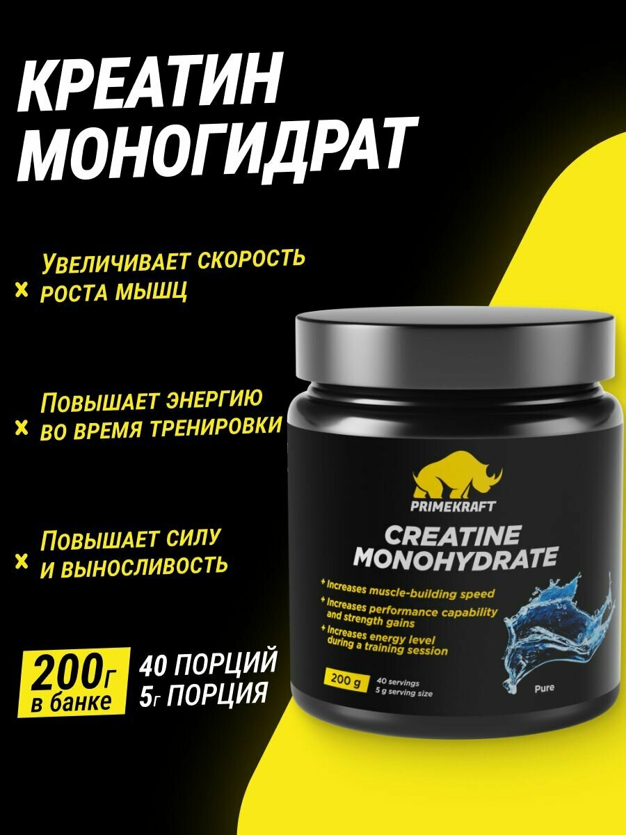 Креатин Моногидрат Микронизированный PRIMEKRAFT Creatine Monohydrate Micronized, Энергетик, банка 200 гр / 40 порций
