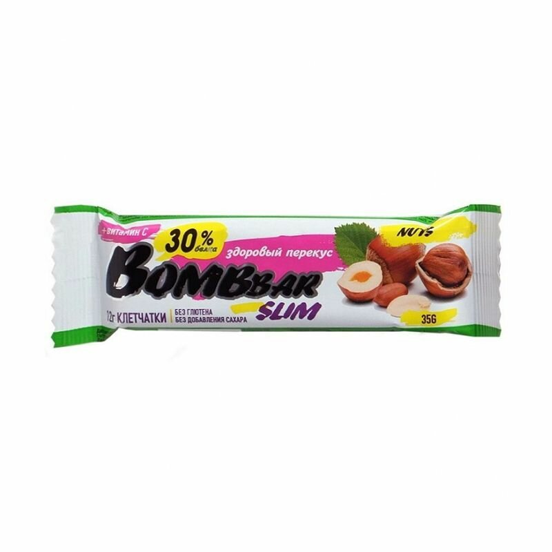 Протеиновый батончик Bombbar Protein Bar Slim 30x35 г, Фундук-арахис