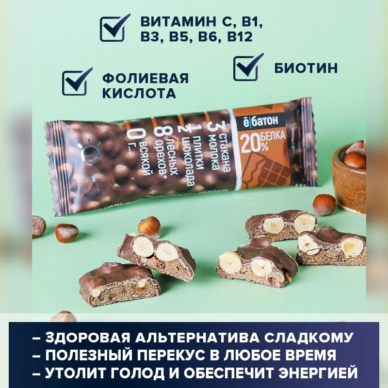 СохранитьПротеиновый батончик Ё|батон со вкусом Шоколад с цельным лесным орехом в темной глазури, 20шт интересное: