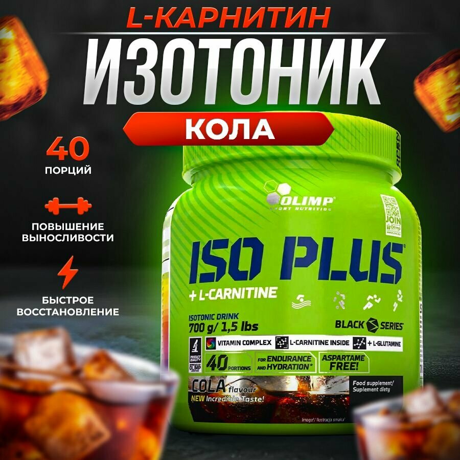 Купить Изотоник Olimp "Iso Plus", с L-карнитином и витаминами, порошок, вкус кола, банка, 750г