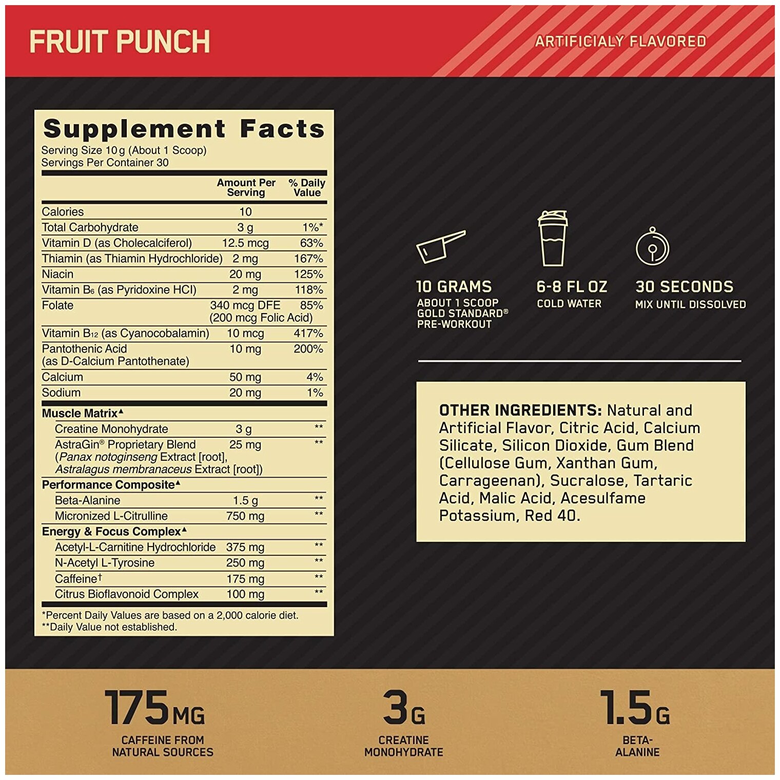 Предтренировочные комплексы для спортсменов Optimum Nutrition Gold Standard Pre-Workout 10,58 oz Fruit Punch