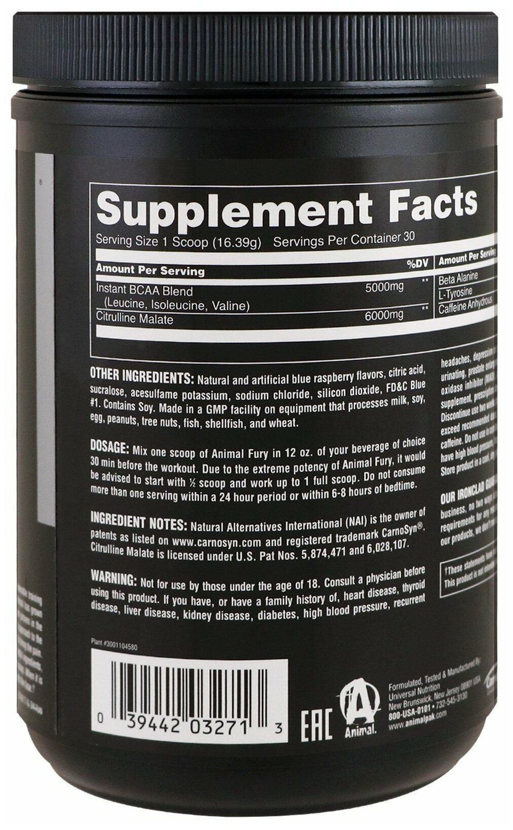 Предтренировочный комплекс Animal Fury, ежевика интересное: