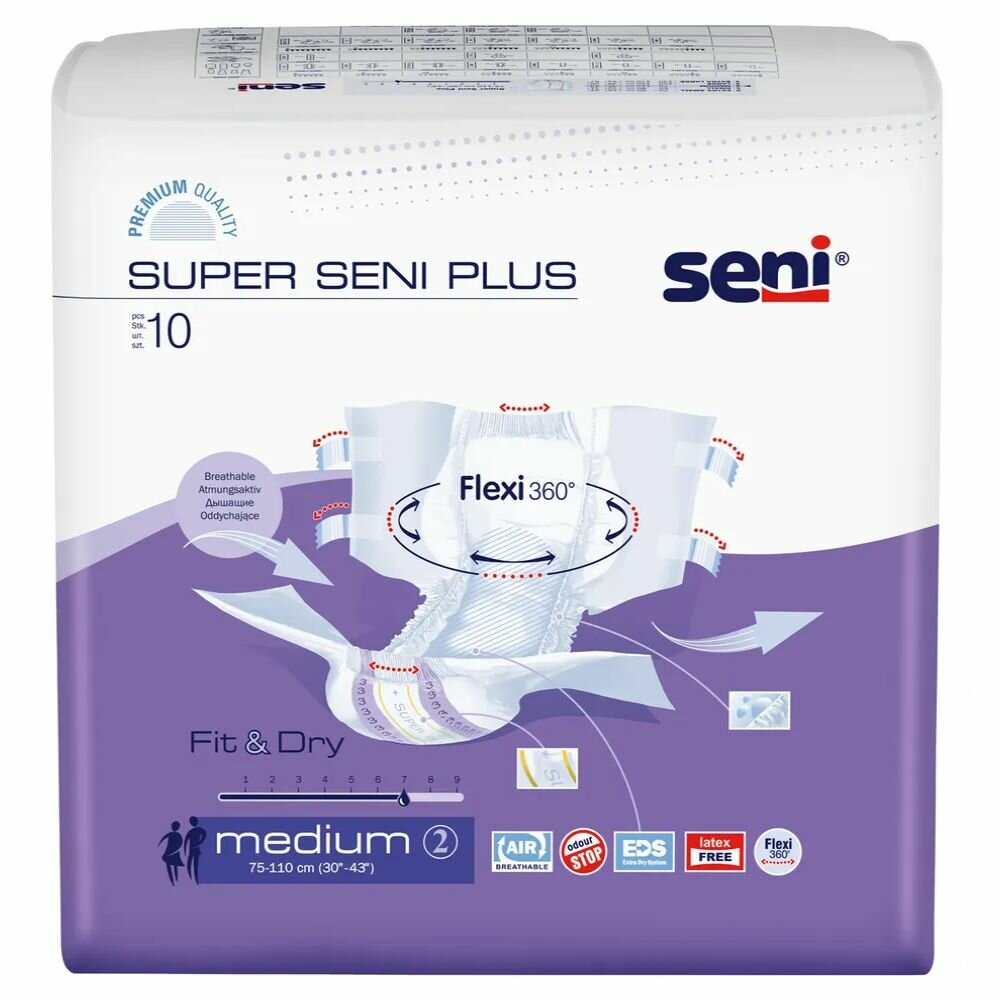 Seni Подгузники для взрослых Super Plus, 75-110 см., M (10 шт.)
