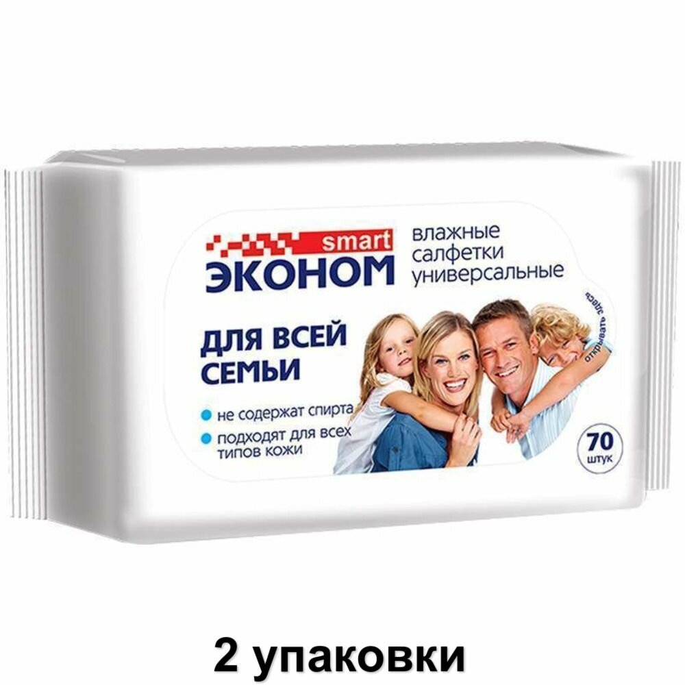 Эконом Smart Салфетки влажные для всей семьи, 70 шт в уп, 2 уп /