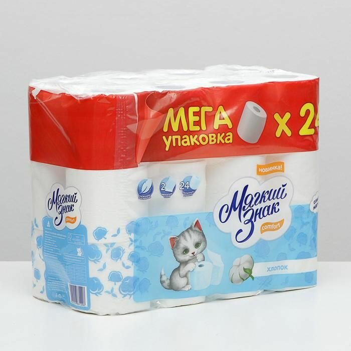 Туалетная бумага Мягкий знак Comfort Хлопок двухслойная 24 рул., белый