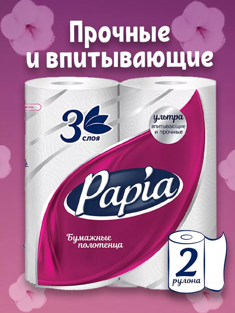 Papia Бумажные полотенца 3 слоя, 2 шт