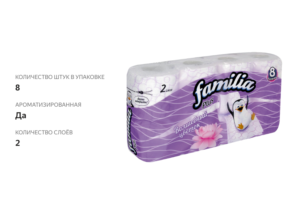 Туалетная бумага FAMILIA PLUS Волшебный цветок 2 слоя 8 рулонов