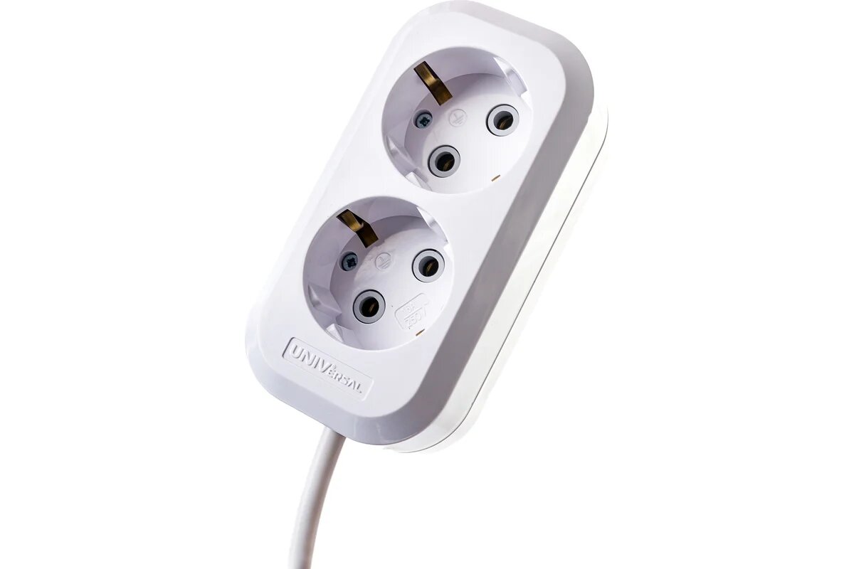 Удлинитель UNIVersal Е-302 (9631972), 2 розетки, с/з, 16А / 3500 Вт белый 2 м 1 м² 2
