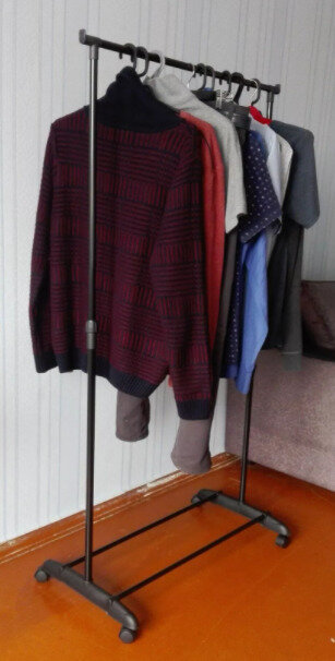 | Минусы: | Очень жиденькая и если перекатывать её, то с божьей помощью. Однако если стоит на месте, то вполне выдерживает на себе кучу одежды |