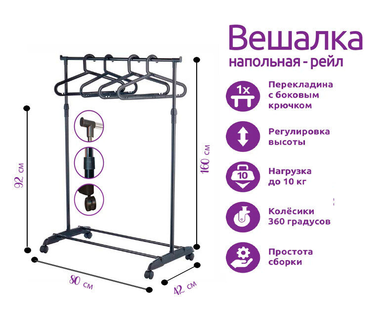 СохранитьВешалка напольная для одежды "Рыжий Кот" GR-02P, регулируемая перекладина, колеса, 80 x 42 x 90-160 см интересное: