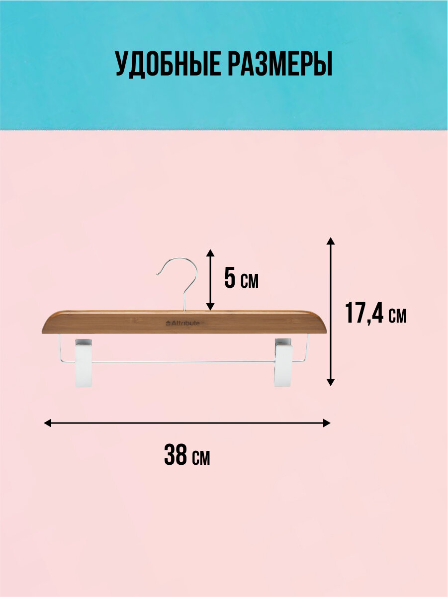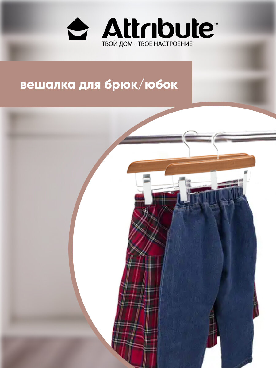 СохранитьВешалка для брюк/юбок c зажимами "BAMBOO" Attribute, 38 см, цвет коричневый интересное: